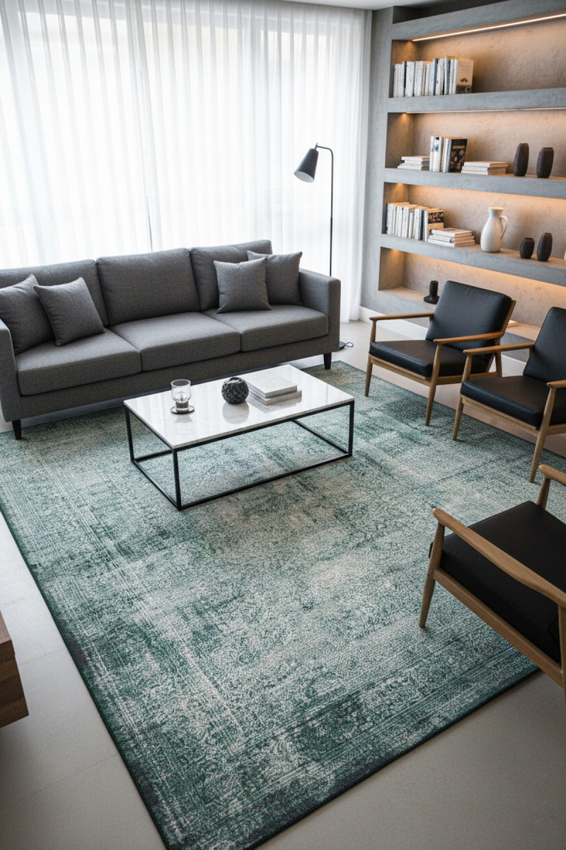 Dorian Eskitme Desenli Dokuma Taban Dekoratif Yeşil Halı AL 223