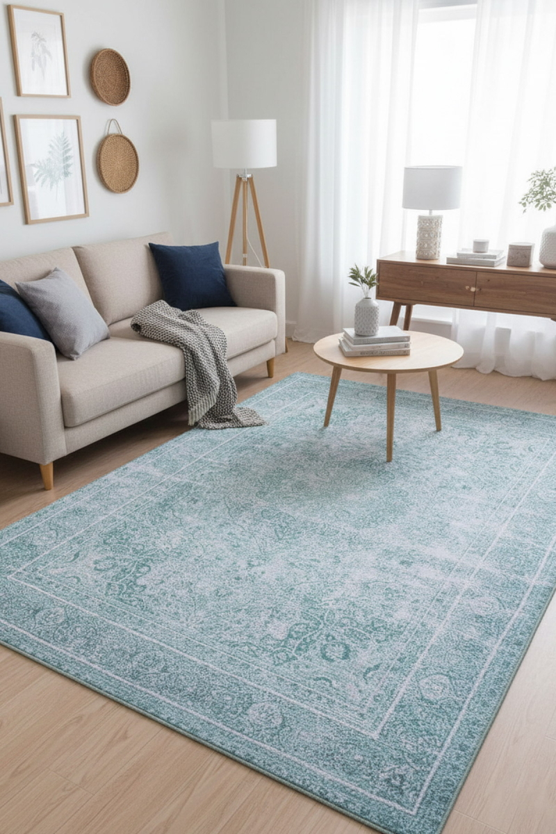 Dorian Eskitme Desenli Dokuma Taban Dekoratif Yeşil Halı AL 44