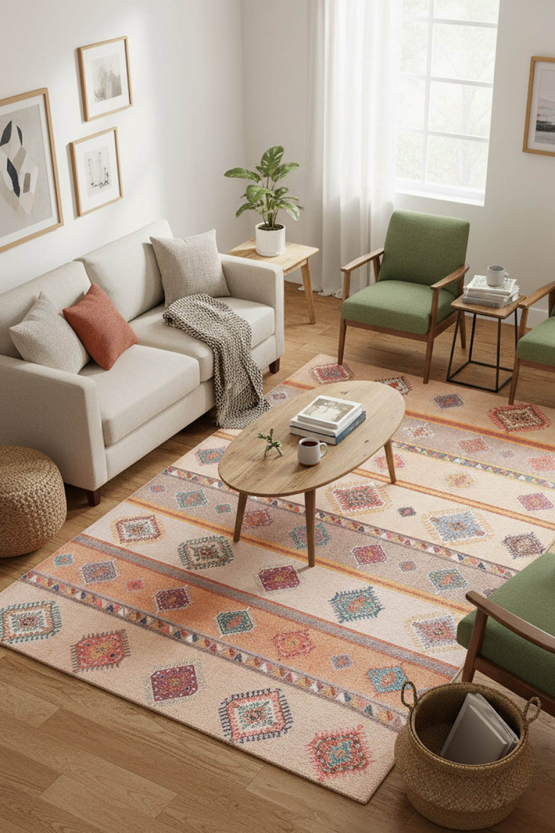 Soul Etnik Desenli Dokuma Taban Dekoratif Renkli Halı AL 282