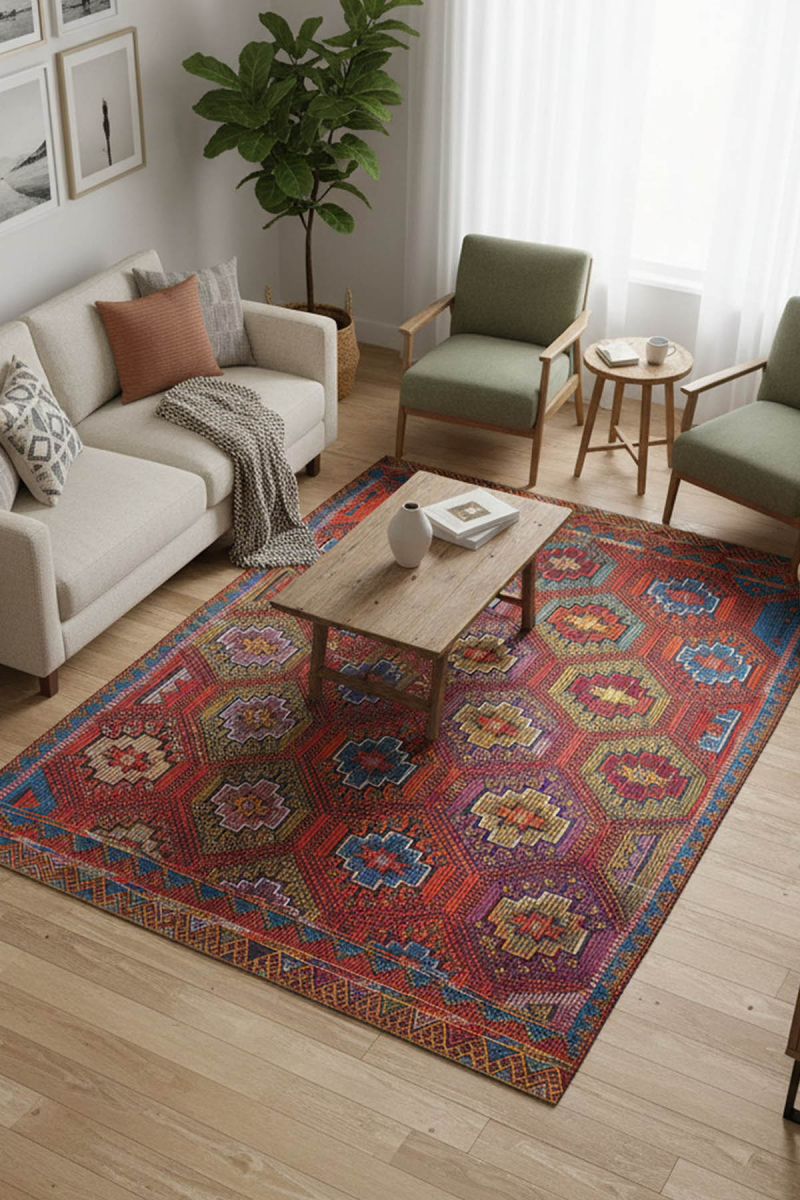Soul Etnik Desenli Dokuma Taban Dekoratif Kırmızı Halı AL 165