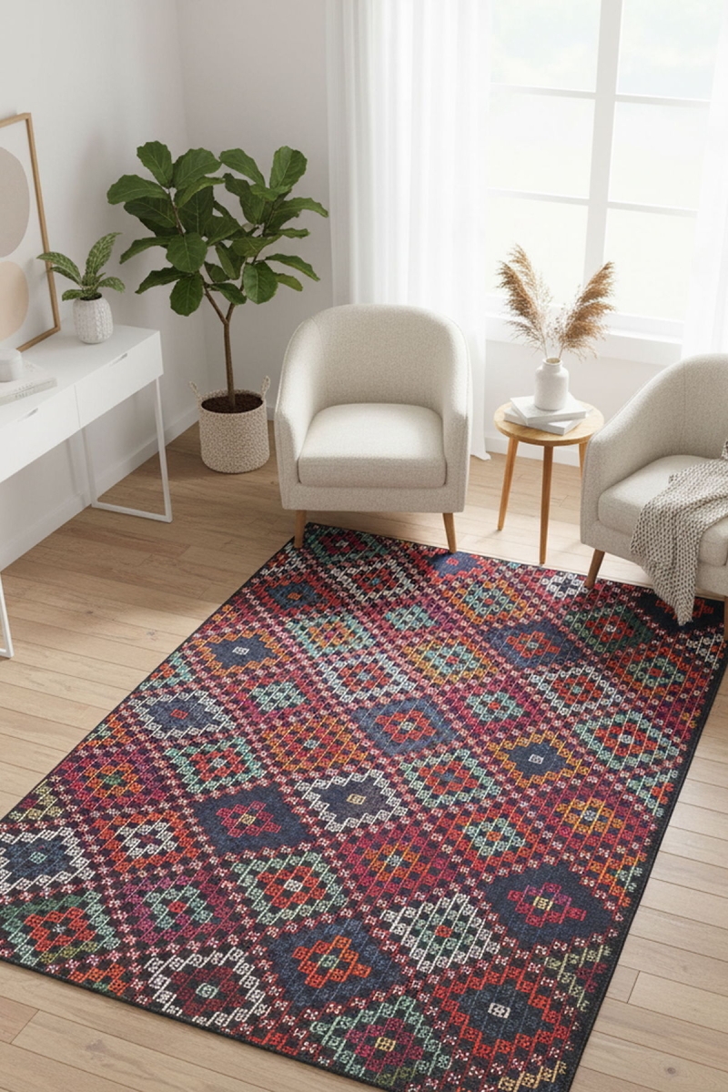Soul Etnik Desenli Dokuma Taban Dekoratif Renkli Halı AL 17