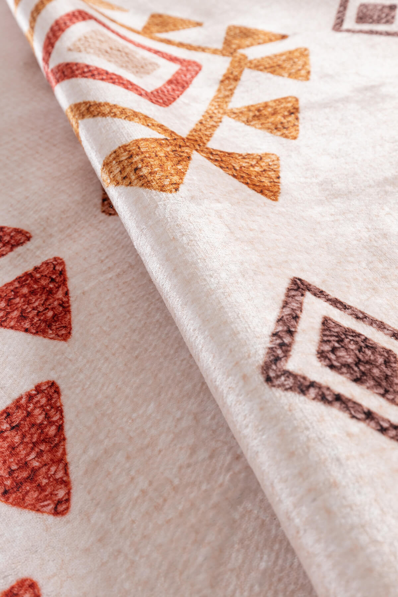 Ürünlerimiz polyester kadife dokulu yüzey üzerine baskıyla tasvir edilmiş desenler ve dokuma tabana sahiptir.