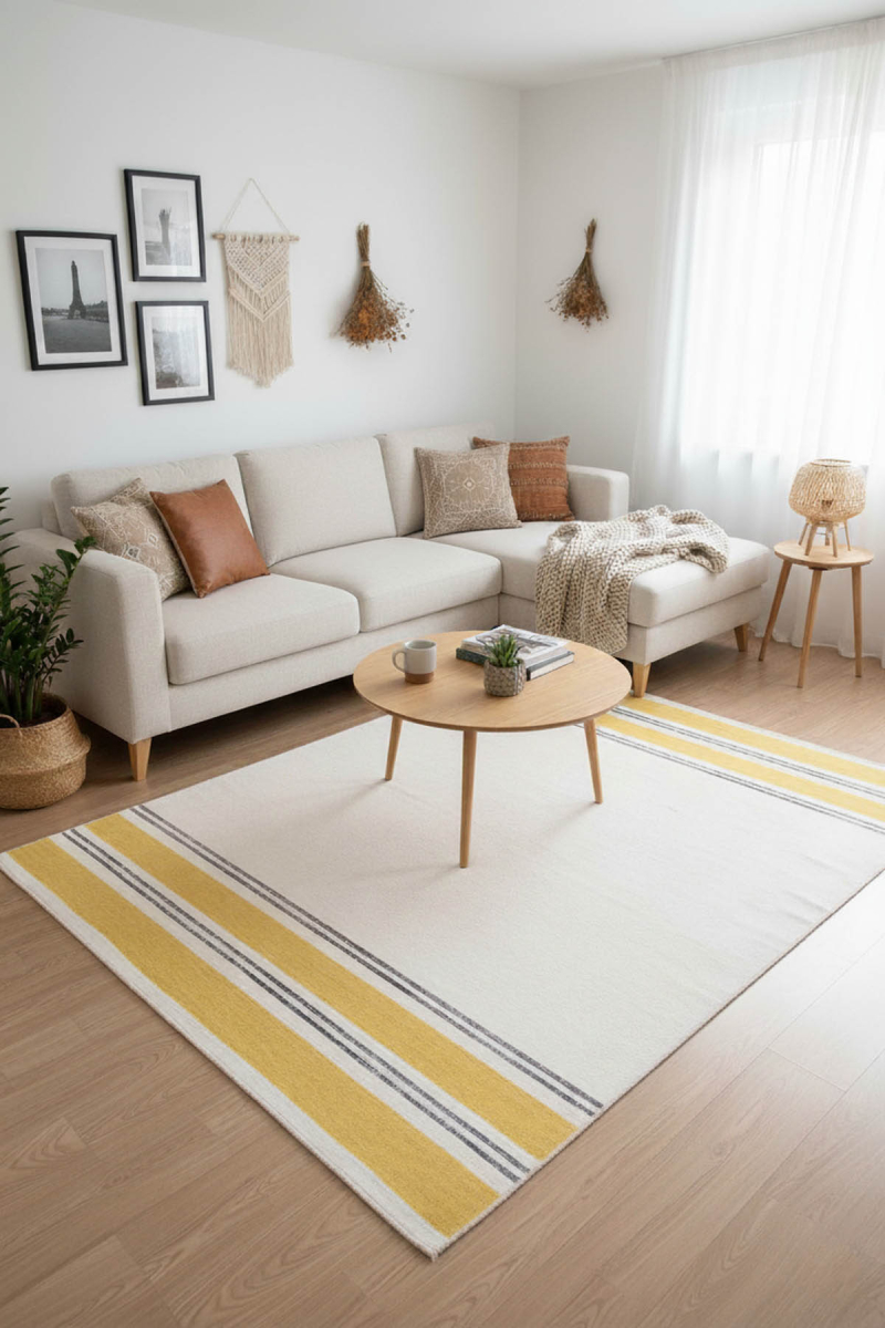 Halıyı pürüzsüz ve kaygan yüzeylerde kullanırken kaymayan bir pedin kullanılmasını öneririz. Tüm halı boyutları +/- %5 ölçü toleransına sahiptir.