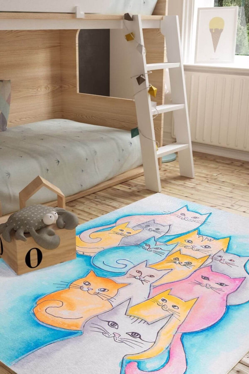 Ada Gönül Özel Tasarım Dekoratif Dokuma Taban Kedi Desenli Renkli Çocuk Halı AL 301
