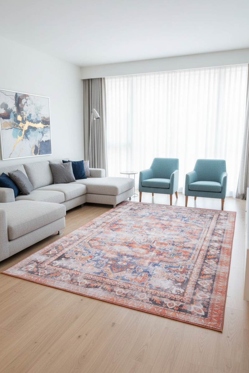 Blues Vintage Desenli Dokuma Taban Dekoratif Renkli Halı AL 272