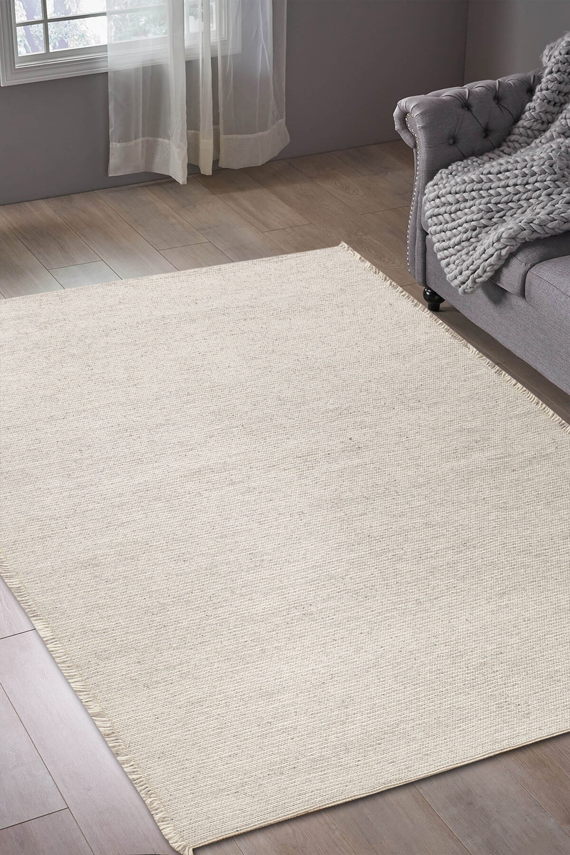 Artloop Wool Yün Dokuma Yandan Saçaklı Bej Halı 160x230 YD 05