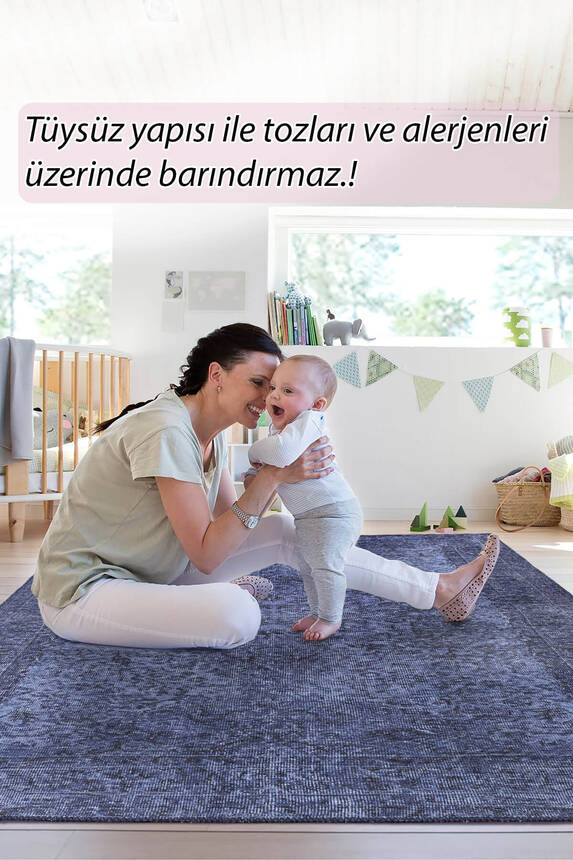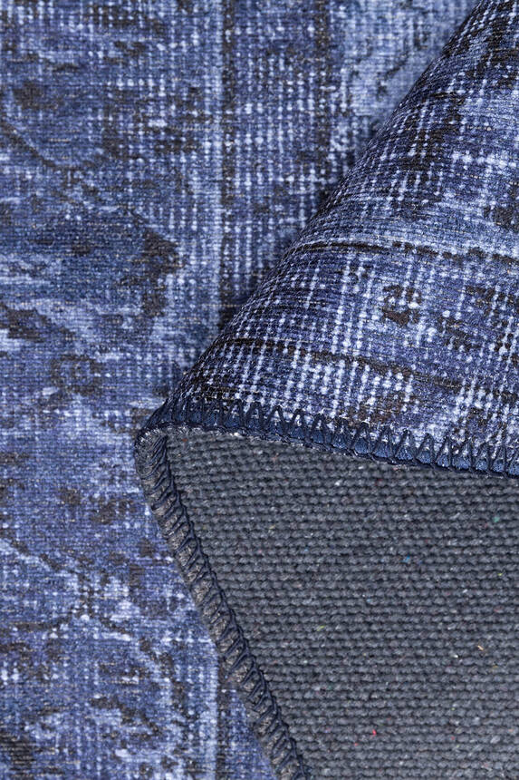 Folk Eskitme Desenli Dokuma Taban Dekoratif Mavi Halı BA 08