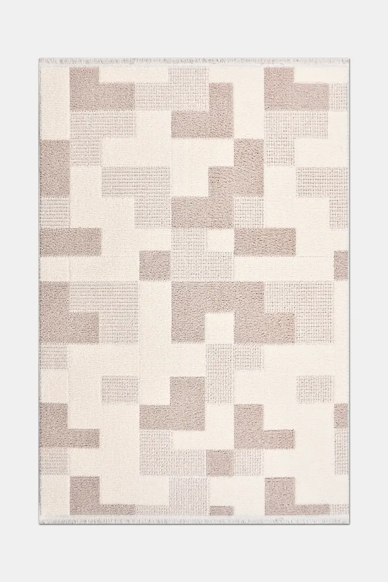 Messa Vizon/Krem Robot Süpürgeye Uyumlu Kolay Temizlenebilir Oturma Odası, Koridor, Yatak Odası Halısı RP 83