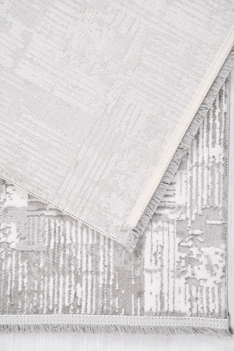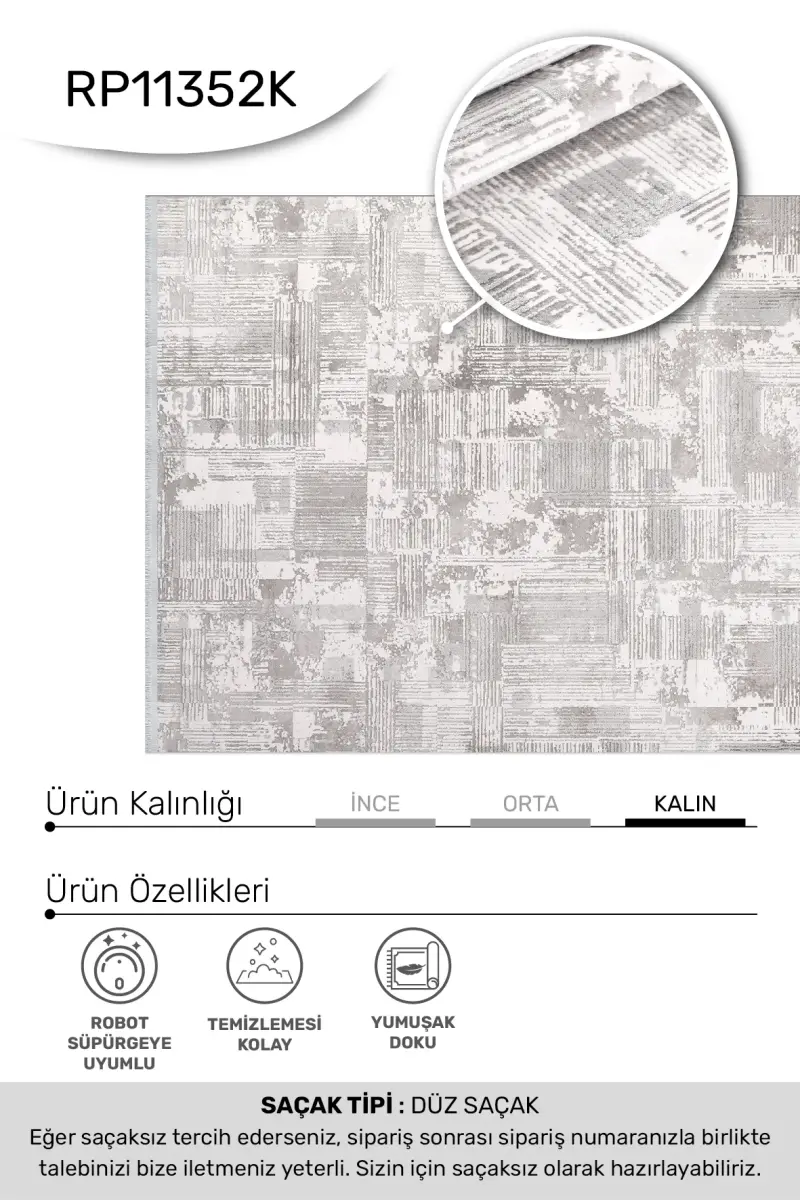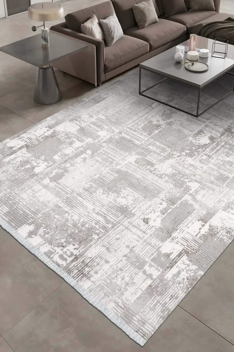 Nova Gri/Krem Robot Süpürgeye Uyumlu Kolay Temizlenebilir Halı Oturma Odası ve Koridor Halısı RP 14