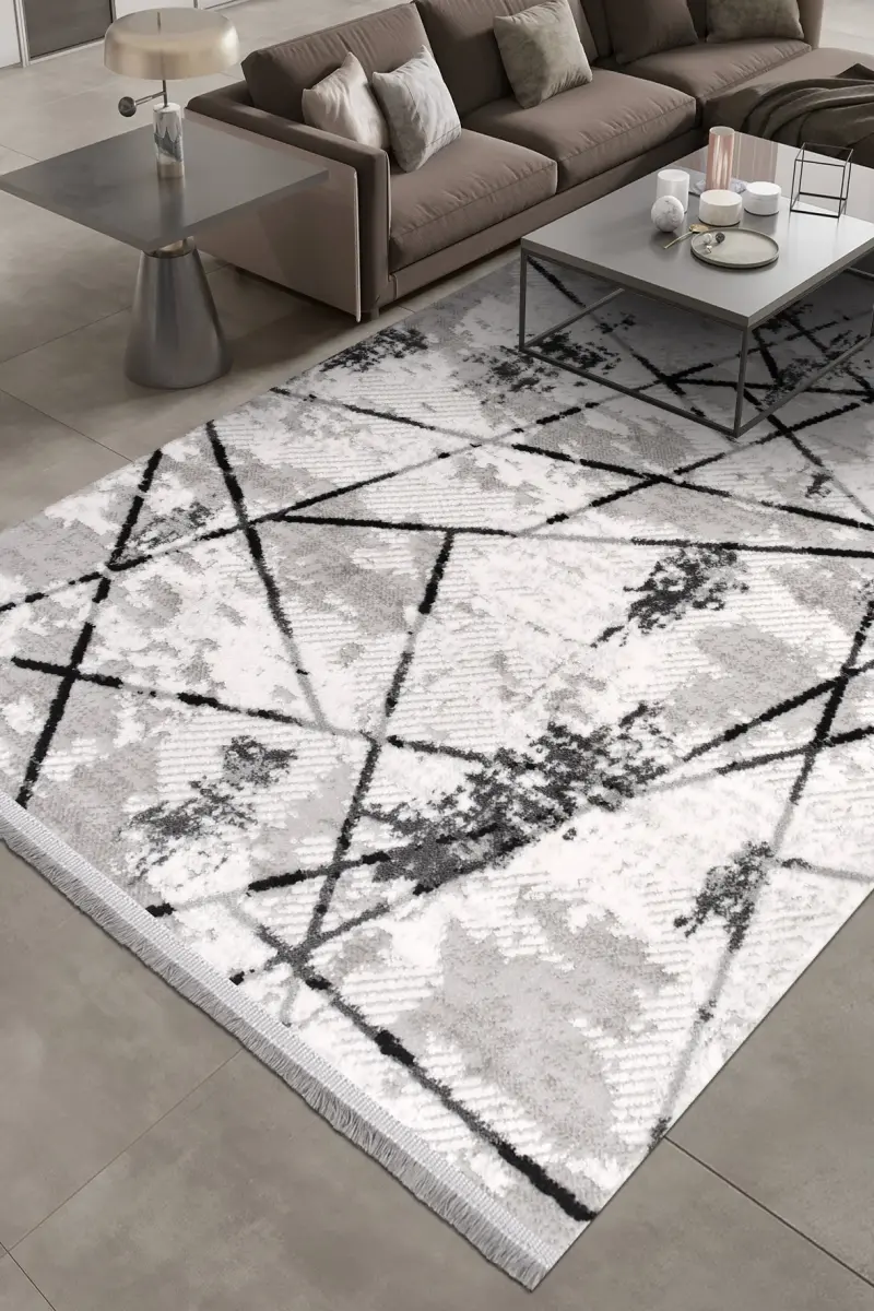 Nova Krem/Antrasit Robot Süpürgeye Uyumlu Kolay Temizlenebilir Halı Oturma Odası ve Koridor Halısı RP 15