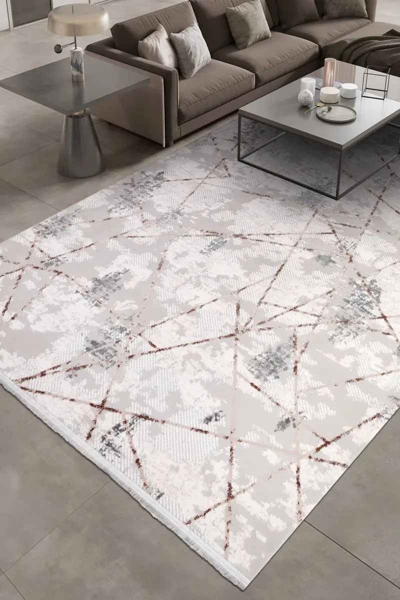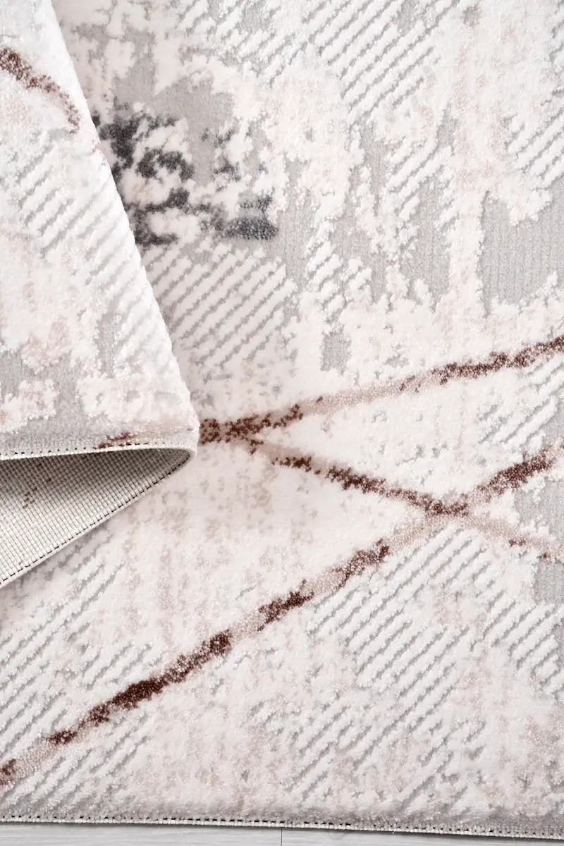 Nova Krem/Kahve Robot Süpürgeye Uyumlu Kolay Temizlenebilir Halı Oturma Odası ve Koridor Halısı RP 09