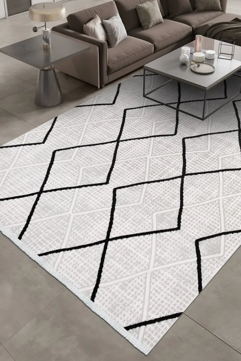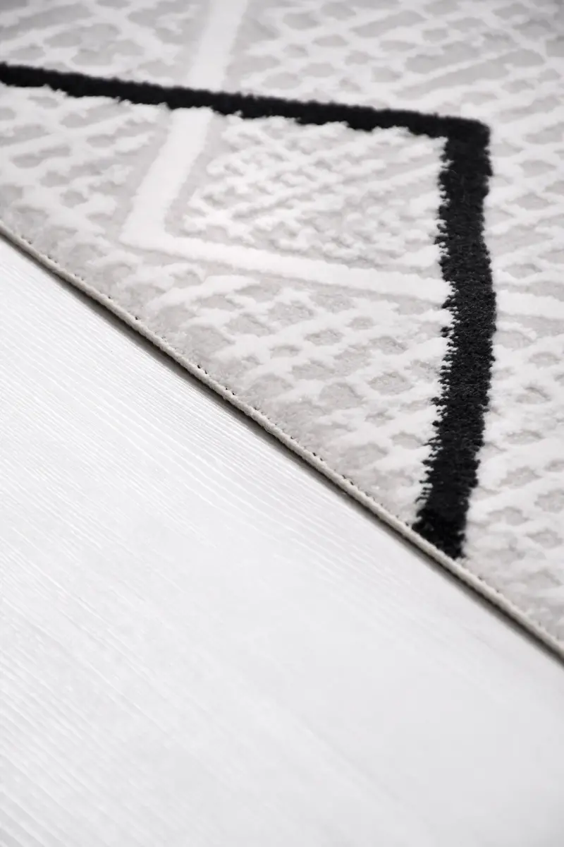 Nova Krem/Vizon/Siyah Robot Süpürgeye Uyumlu Kolay Temizlenebilir Halı Oturma Odası ve Koridor Halısı RP 12