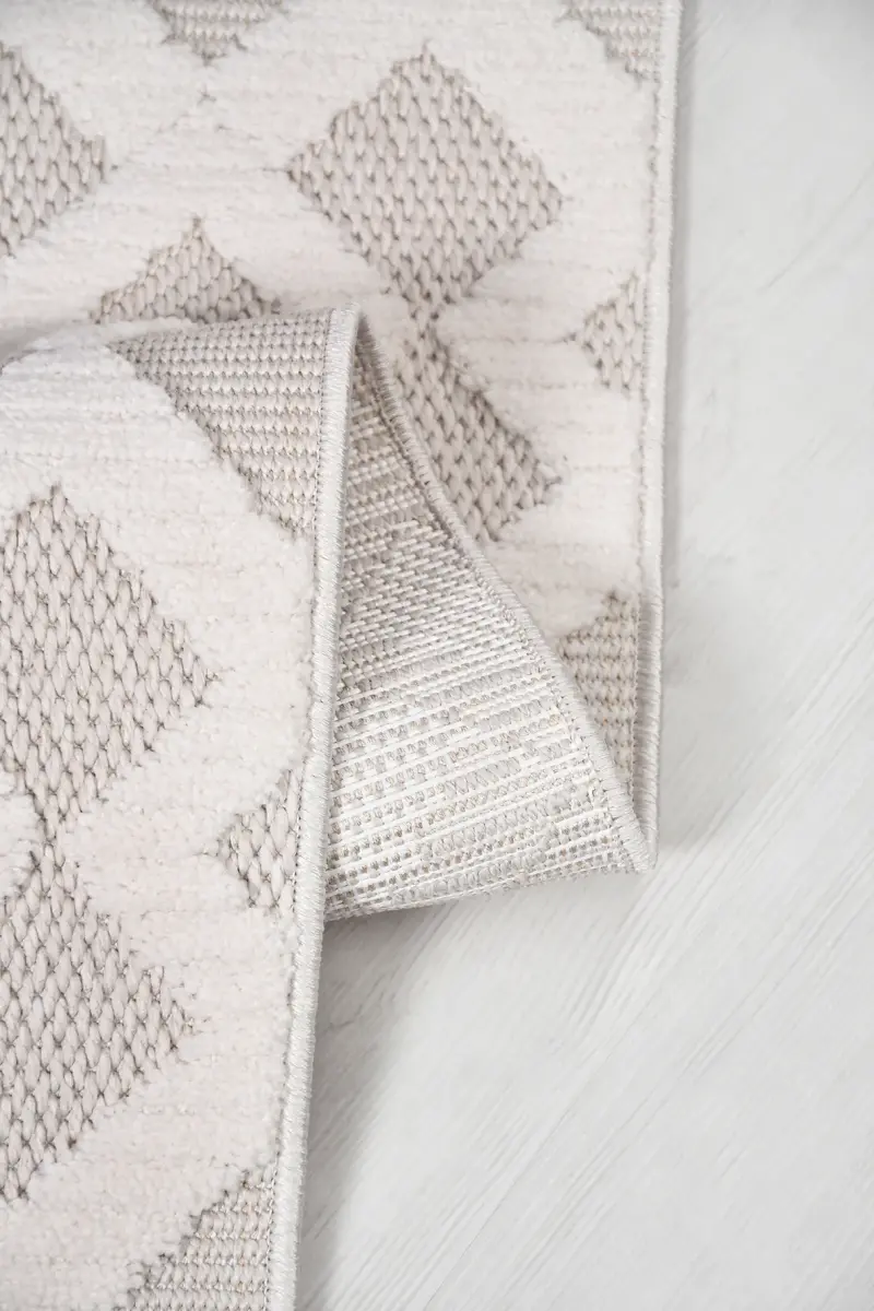 Oasis Beyaz Bej Robot Süpürgeye Uyumlu Kolay Temizlenebilir Halı Oturma Odası, Koridor, Yatak Odası Halısı RP 35