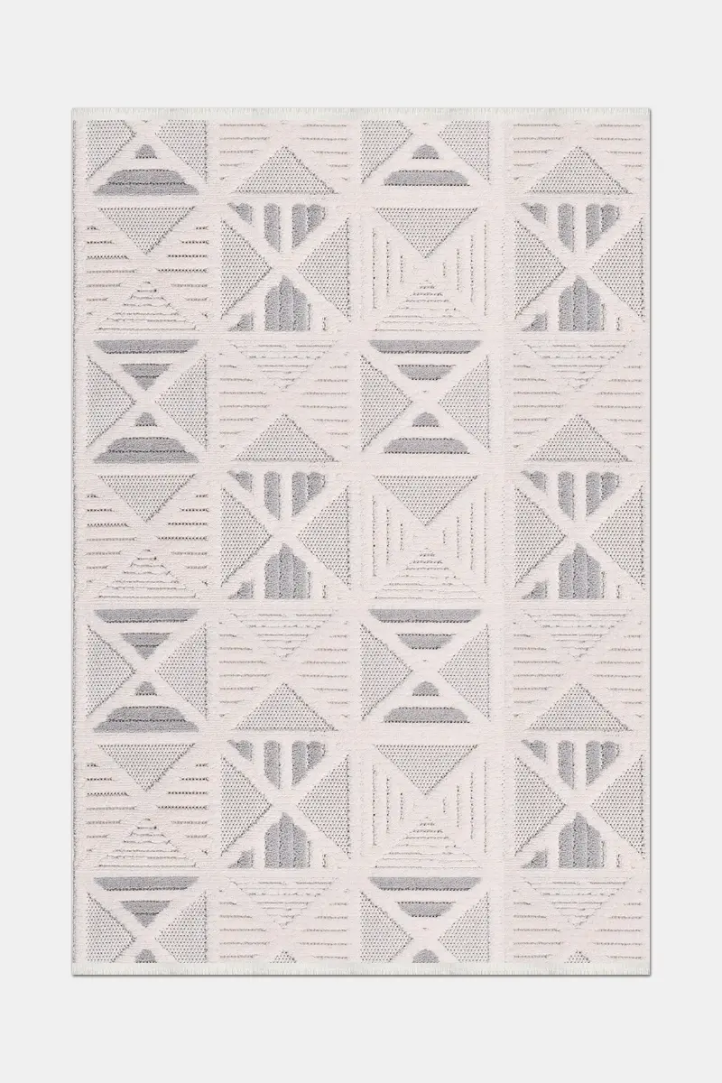Oasis Beyaz Bej Robot Süpürgeye Uyumlu Kolay Temizlenebilir Halı Salon, Oturma Odası ve Koridor Halısı RP 33