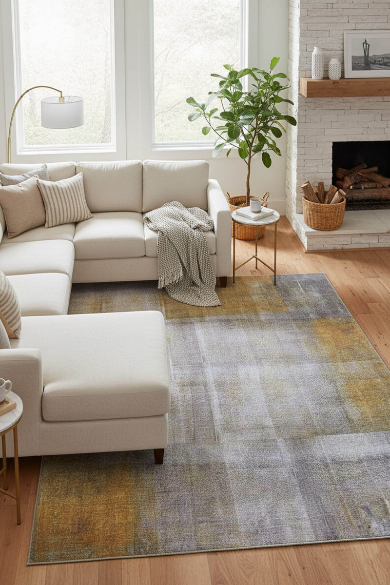 Outlet 115x160 Funk Dokuma Taban Dekoratif Modern Gri / Sarı Halı AL-10