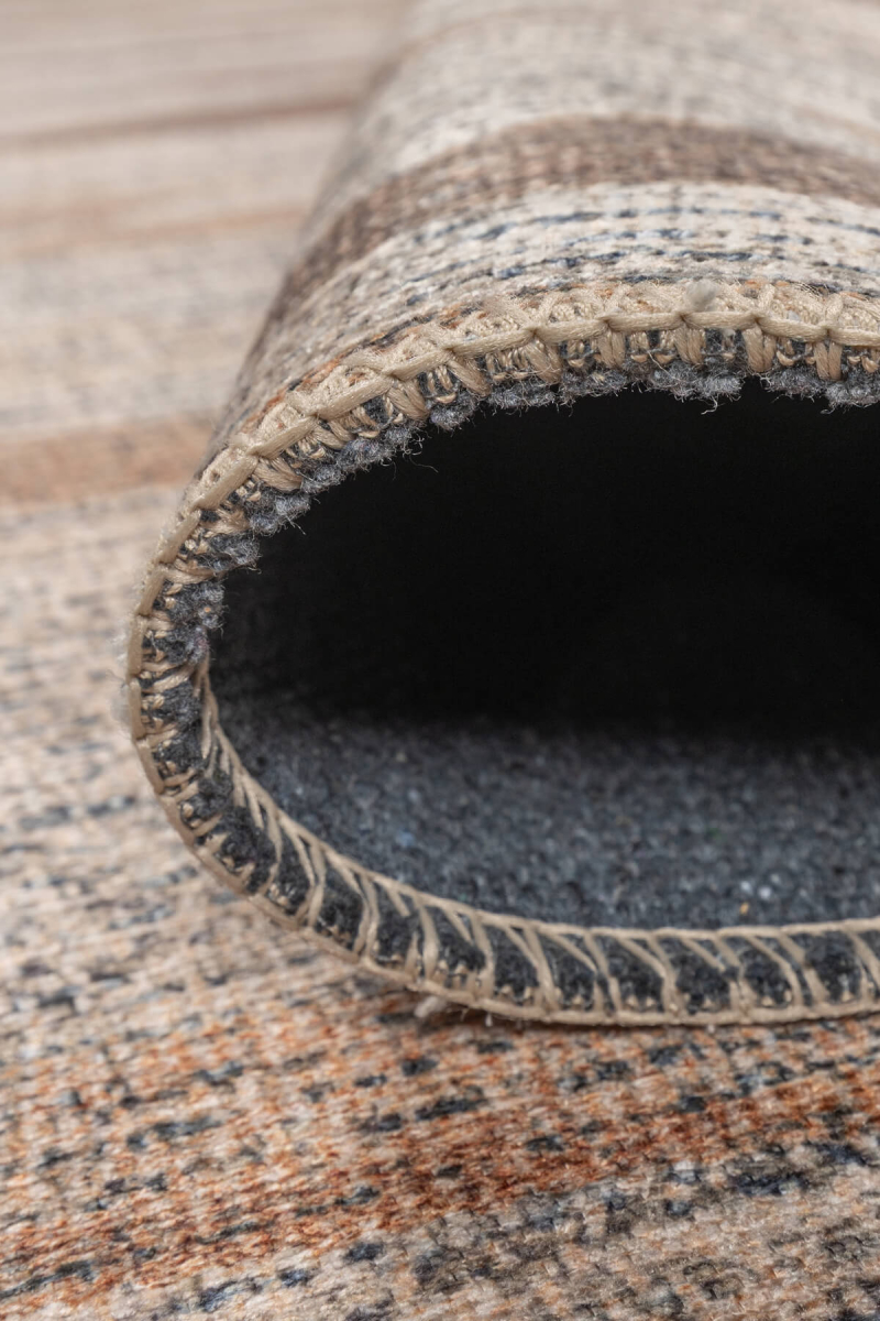Outlet 140x190 Stonart Otantik Modern Eskitme Desenli Yıkanabilir Kahverengi Şönil Halı AL-442