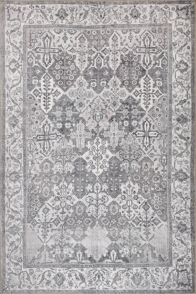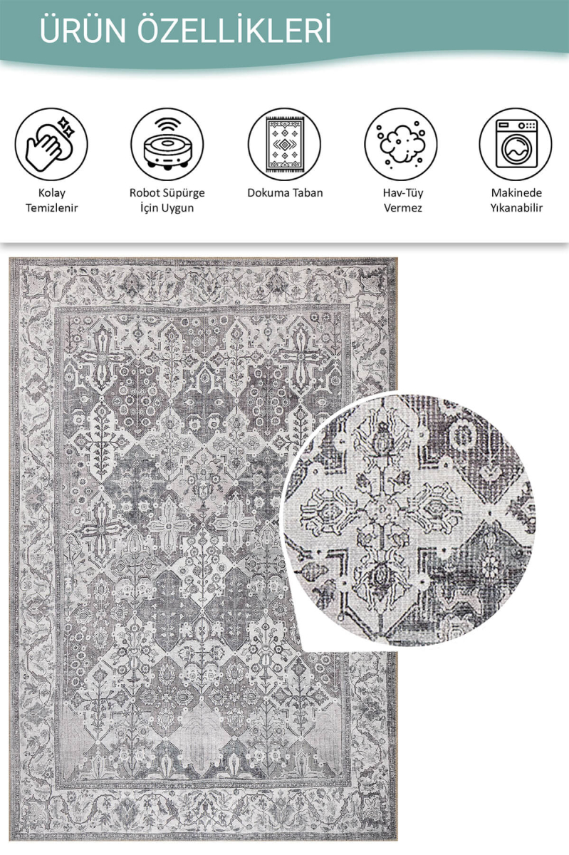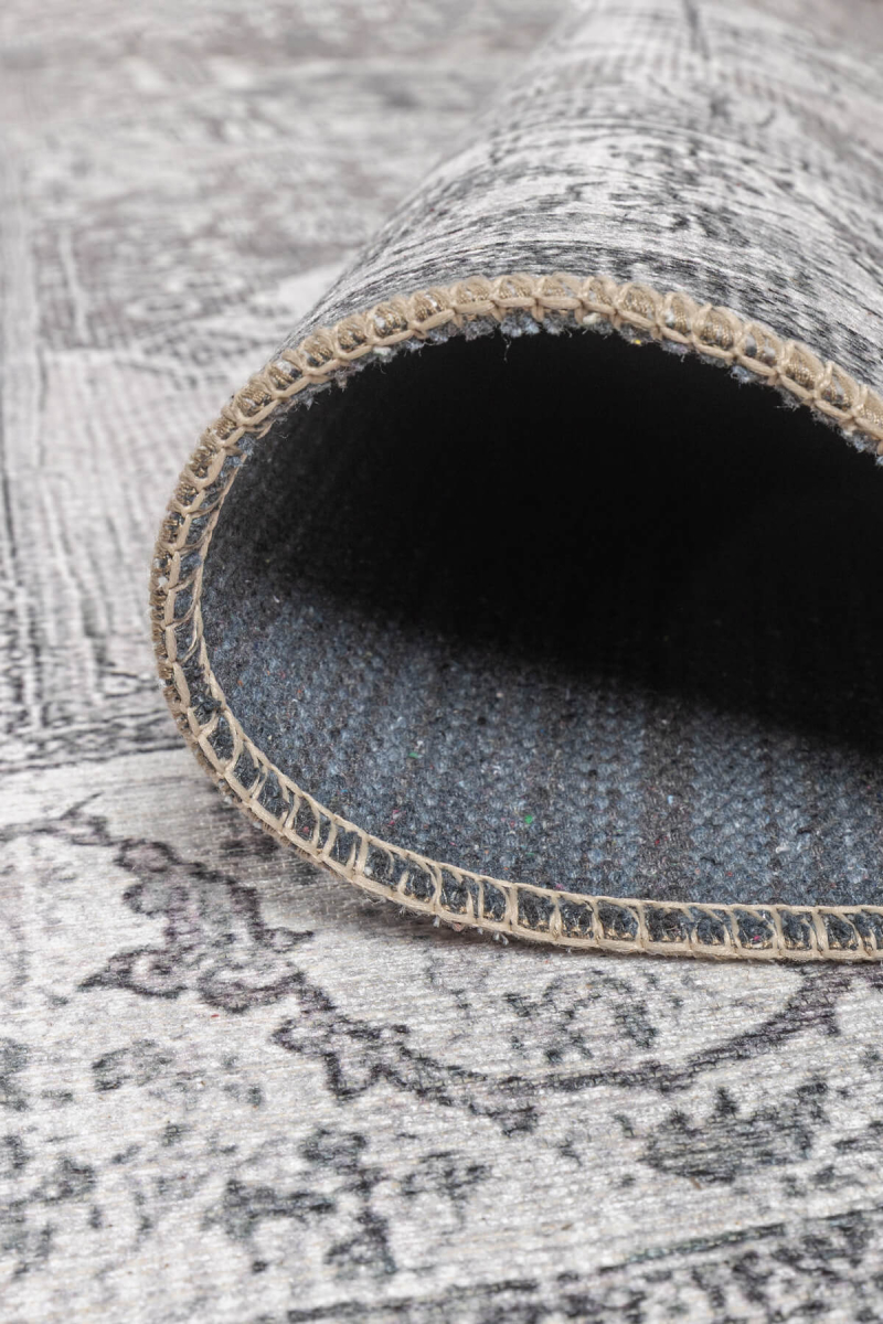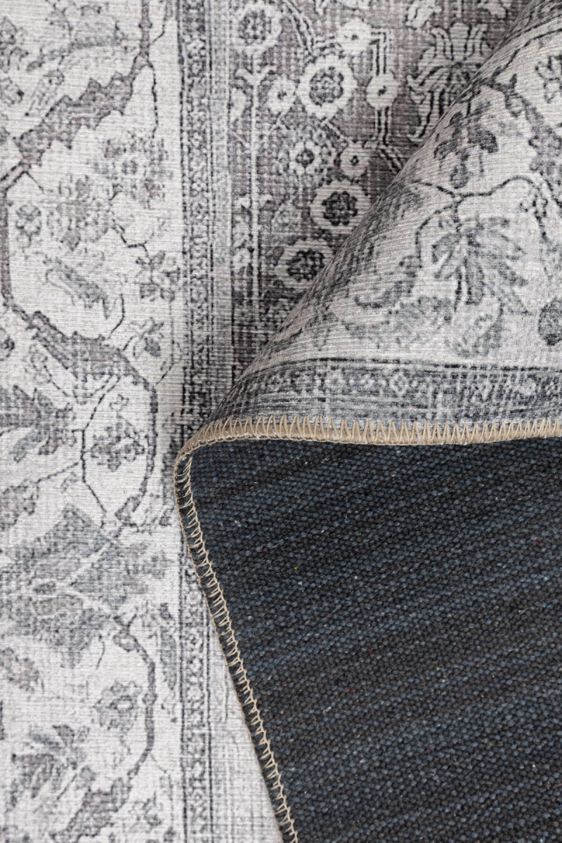 Outlet 150x230 Stonart Eskitme Vintage Desenli Gri Otantik Yıkanabilir Şönil Halı AL-446
