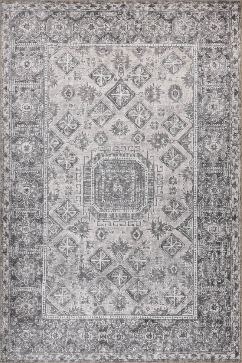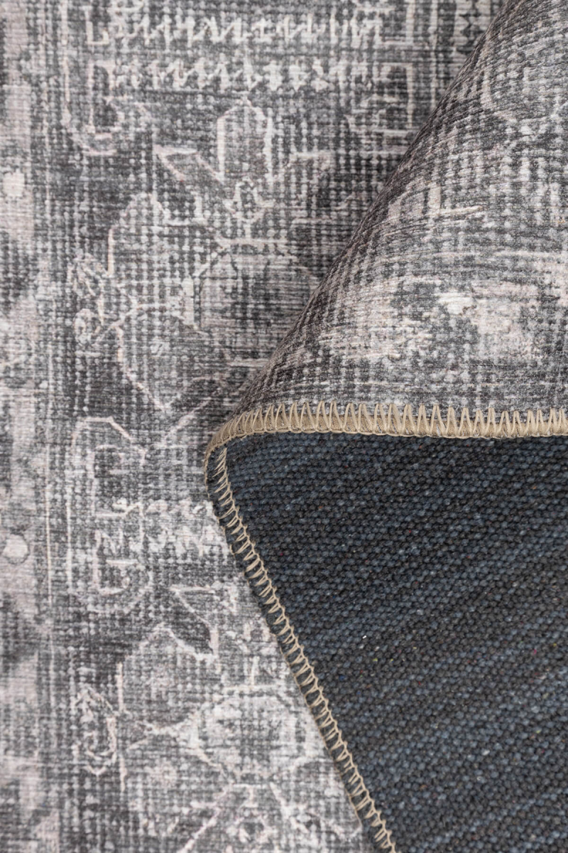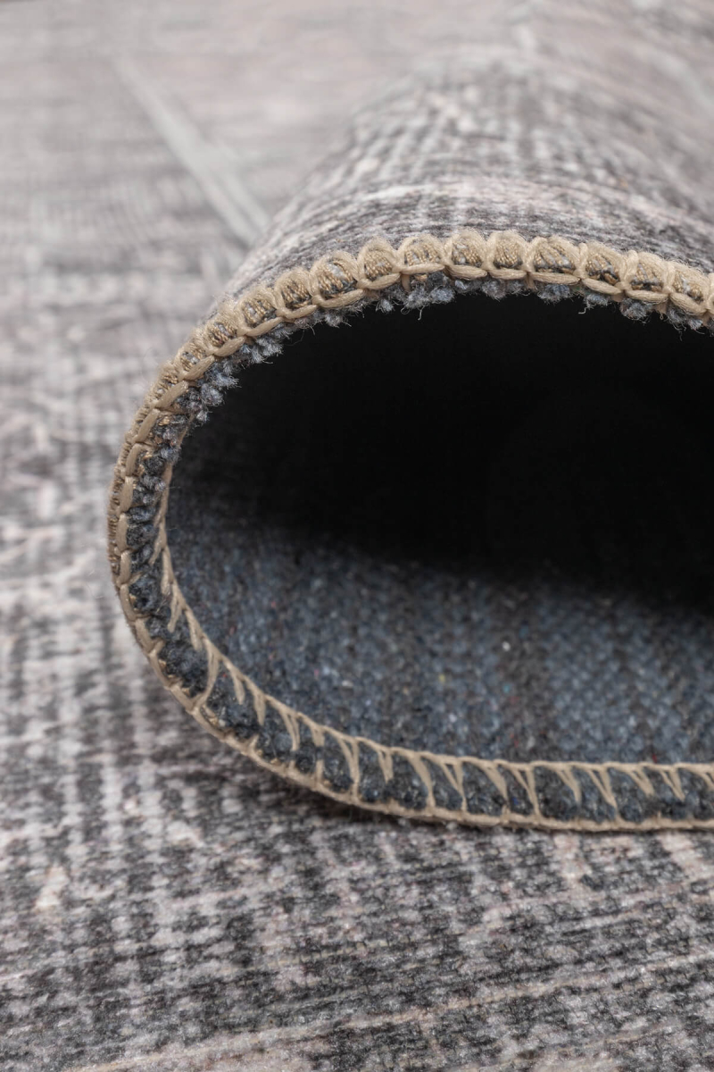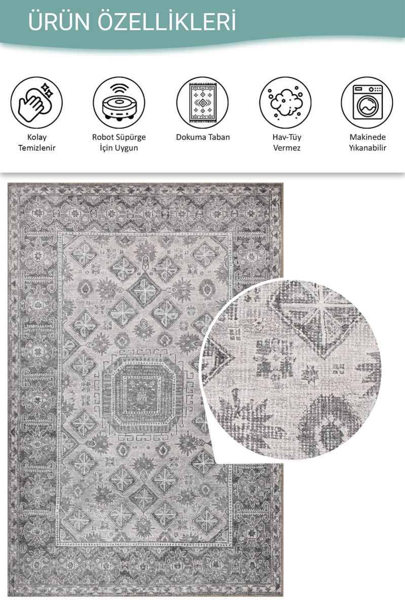 Outlet 150x230 Stonart Eskitme Vintage Desenli Gri Otantik Yıkanabilir Şönil Halı AL-456