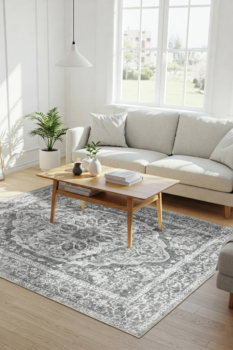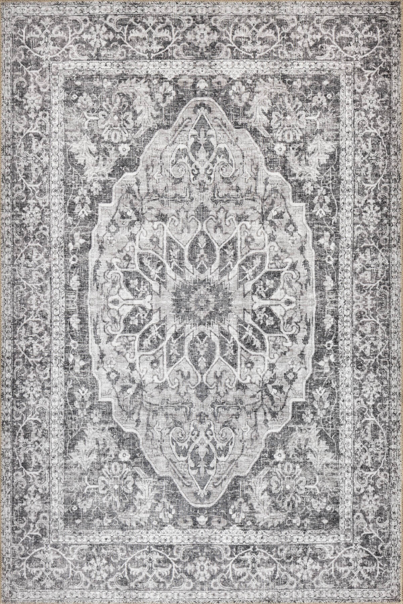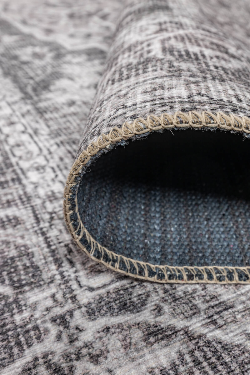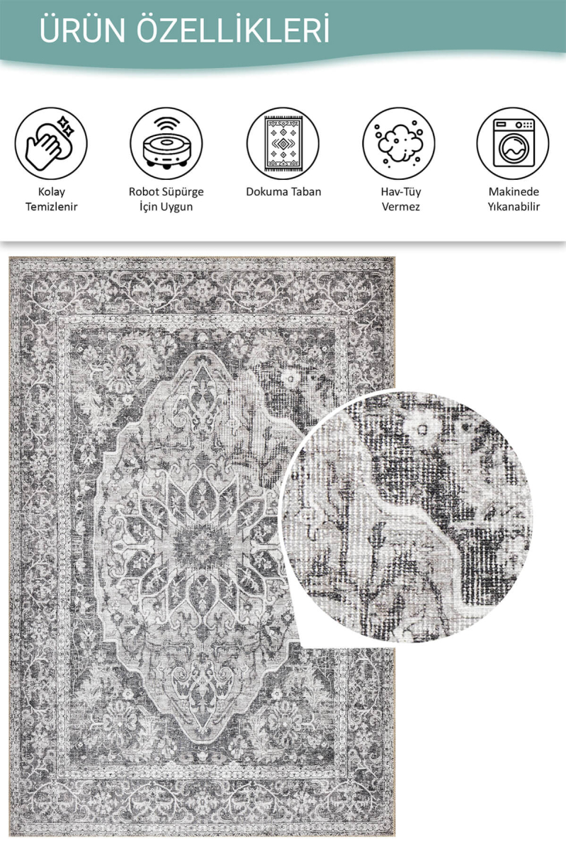 Outlet 150x230 Stonart Eskitme Vintage Desenli Gri Otantik Yıkanabilir Şönil Halı AL-457