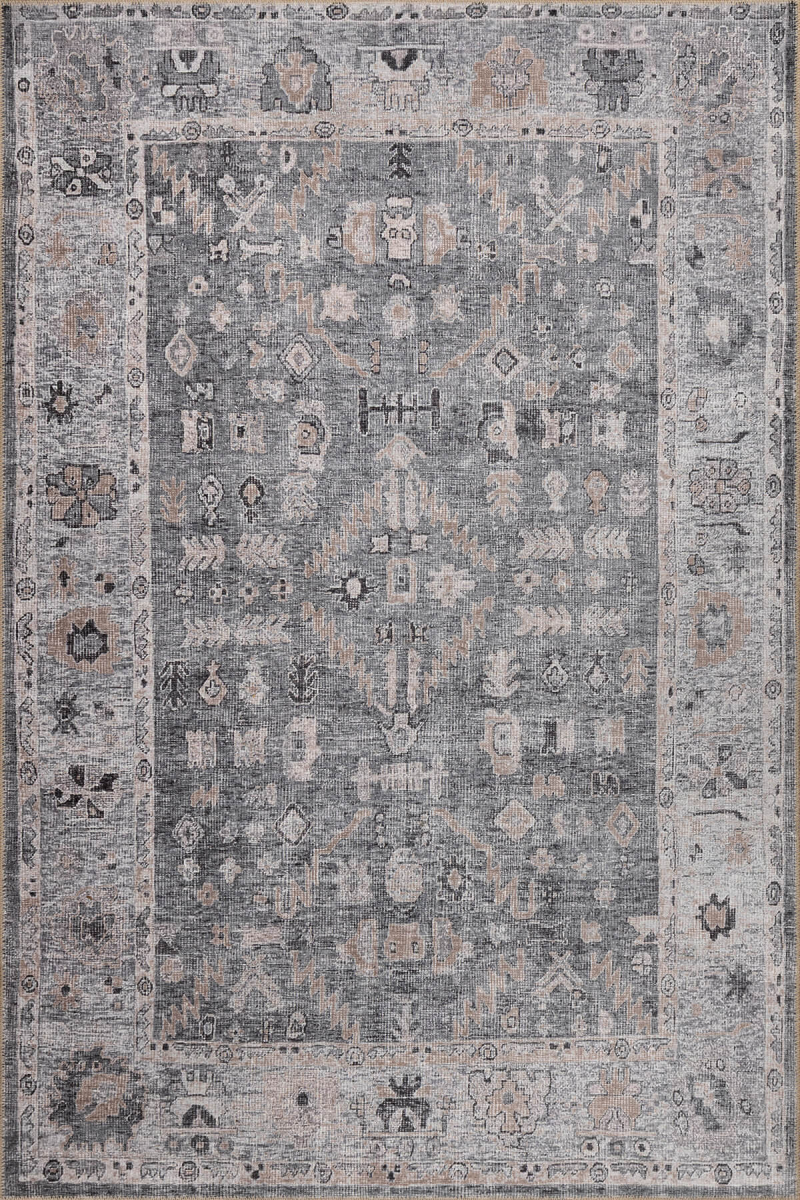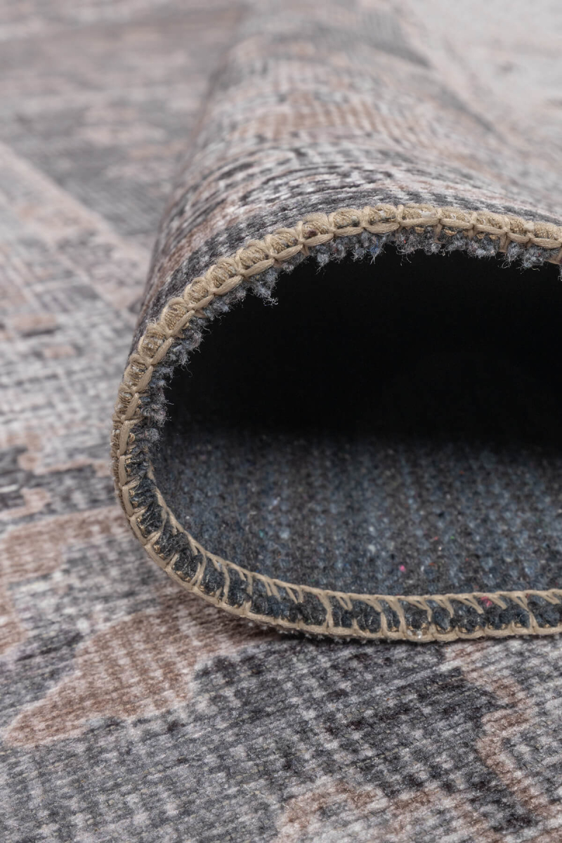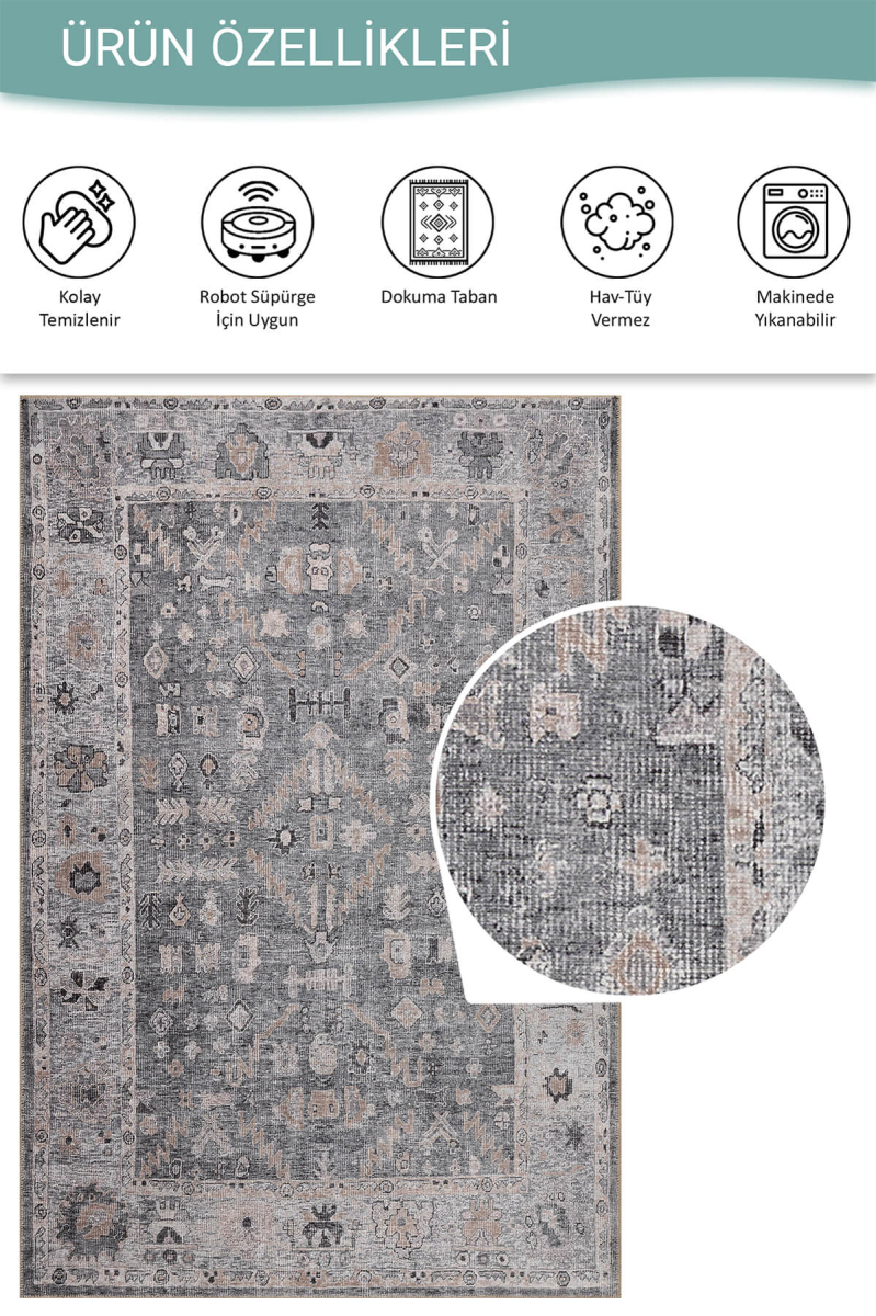 Outlet 150x230 Stonart Eskitme Vintage Desenli Gri Otantik Yıkanabilir Şönil Halı AL-467