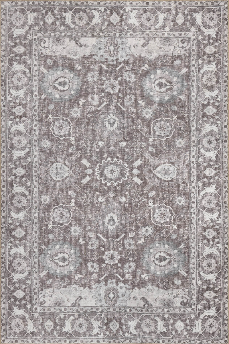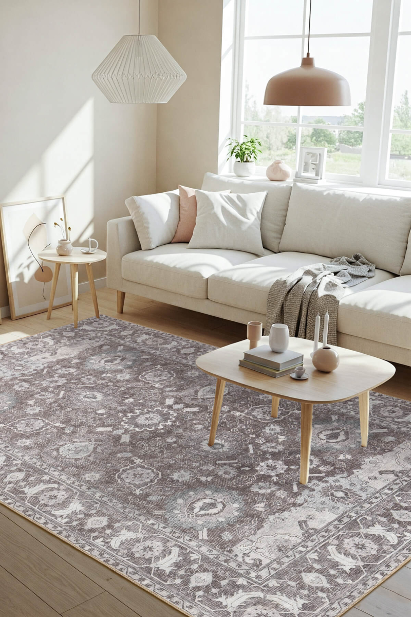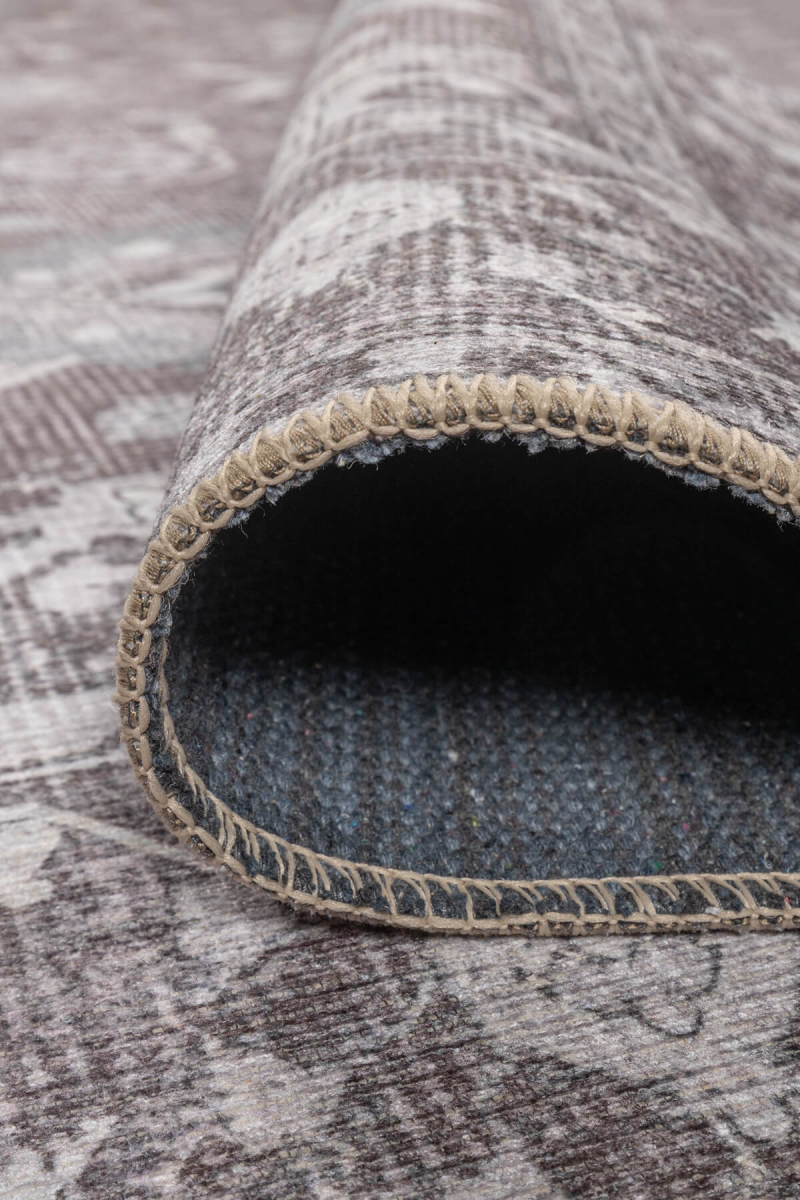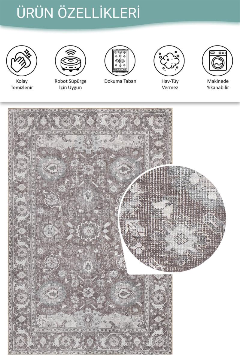 Outlet 150x230 Stonart Eskitme Vintage Desenli Kahverengi Otantik Yıkanabilir Şönil Halı AL-454