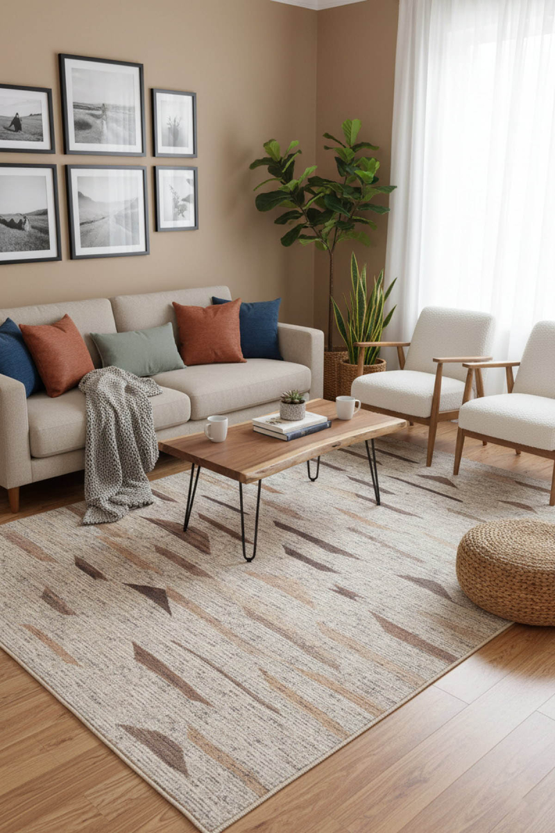 Outlet 150x230 Stonart Otantik Modern Eskitme Desenli Yıkanabilir Kahverengi Şönil Halı AL-442