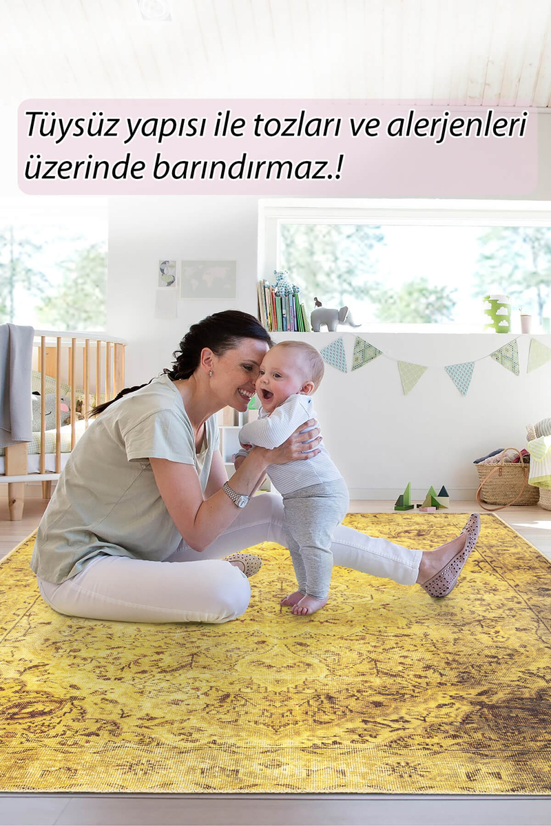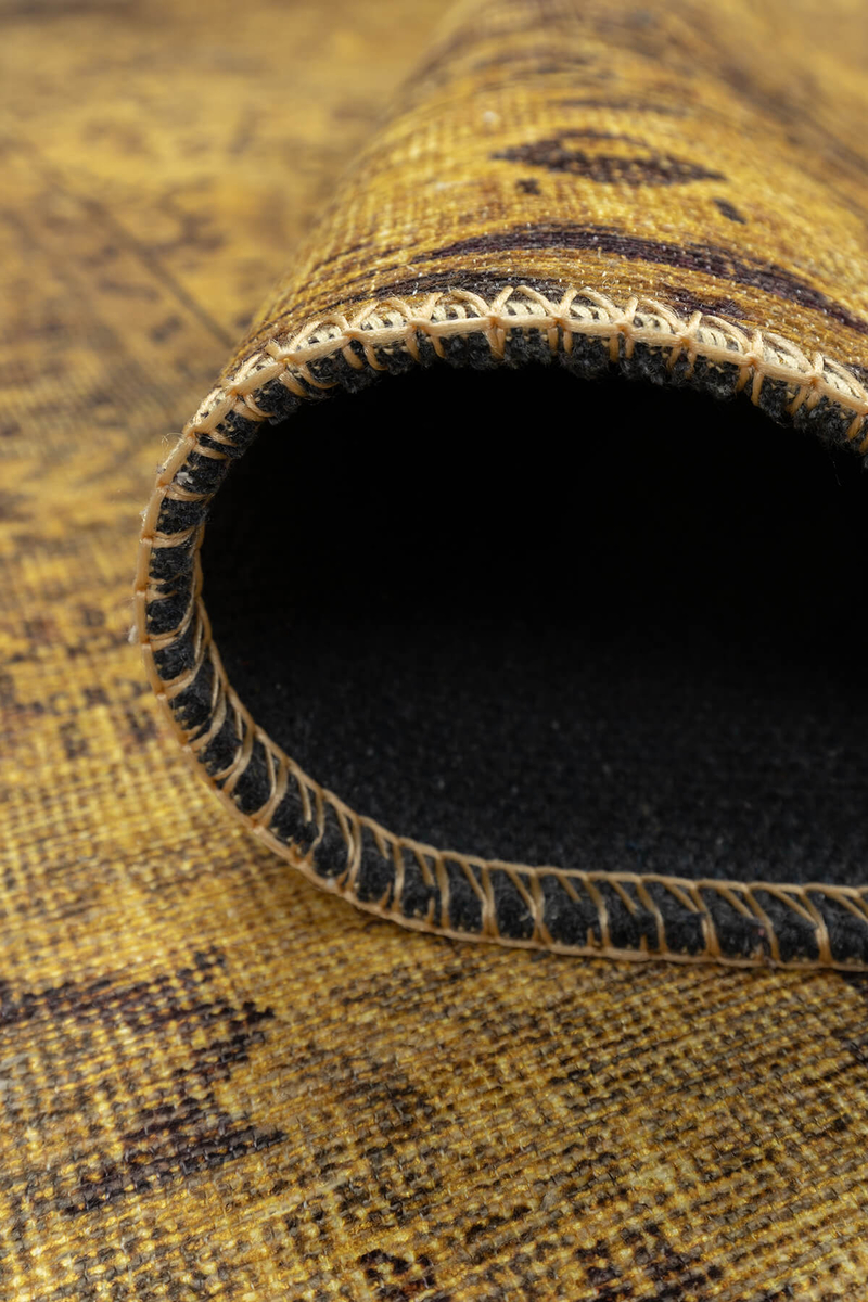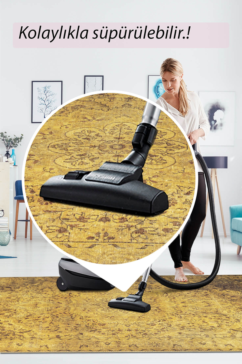 Gelince Haber VerOutlet 210x210 Kare Blues Vintage Desenli Dokuma Taban Dekoratif Sarı Halı AL-24