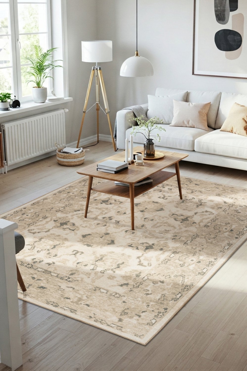 Outlet 210x210 Kare Relic Bej Vintage Dokulu Klasik Desenli Dokuma Tabanlı Şönil Halı AL-521