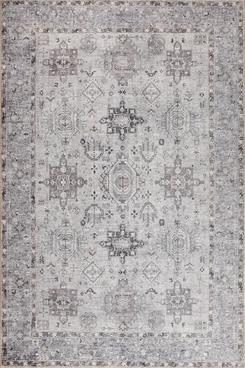Outlet 210x310 Stonart Eskitme Vintage Desenli Gri Otantik Yıkanabilir Şönil Halı AL-461