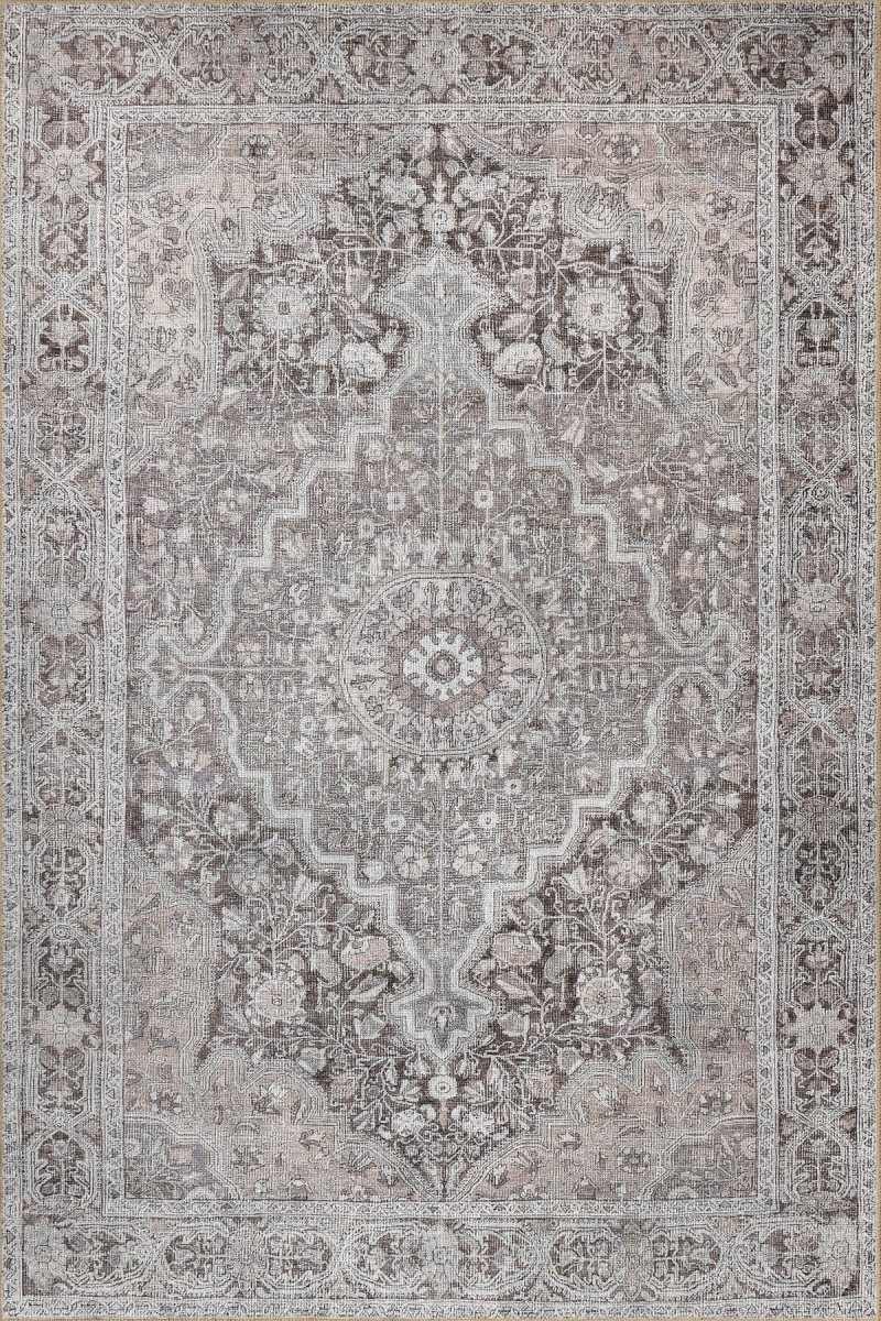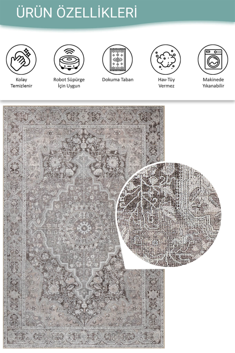 Outlet 250x250 Kare Stonart Klasik Eskitme Vintage Desenli Otantik Yıkanabilir Gri/Kahverengi Halı AL-444