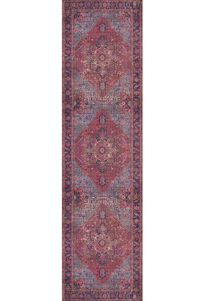 Outlet 300X400 Blues Vintage Desenli Dokuma Taban Dekoratif Bordo Halı AL-162