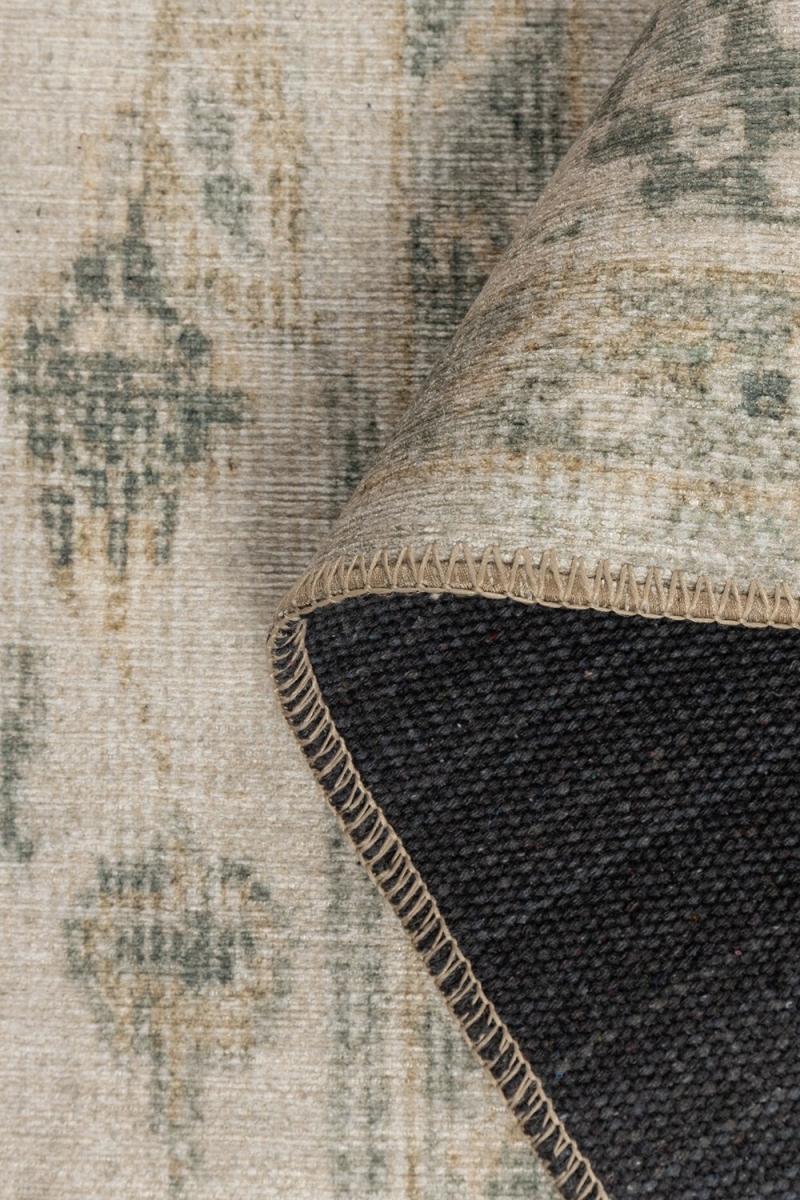 Outlet 75x150 Relic Yeşil Vintage Dokulu Klasik Desenli Dokuma Tabanlı Şönil Halı AL-517