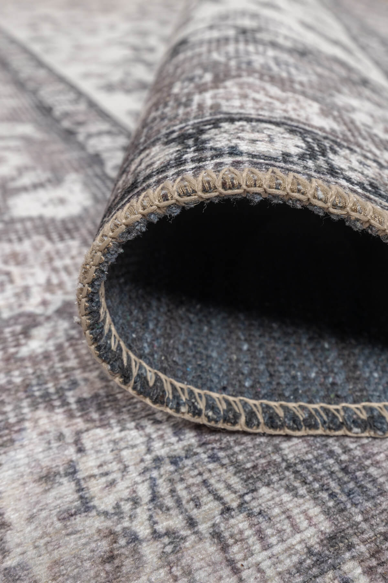 Outlet 75x150 Stonart Eskitme Vintage Desenli Gri Otantik Yıkanabilir Şönil Halı AL-447