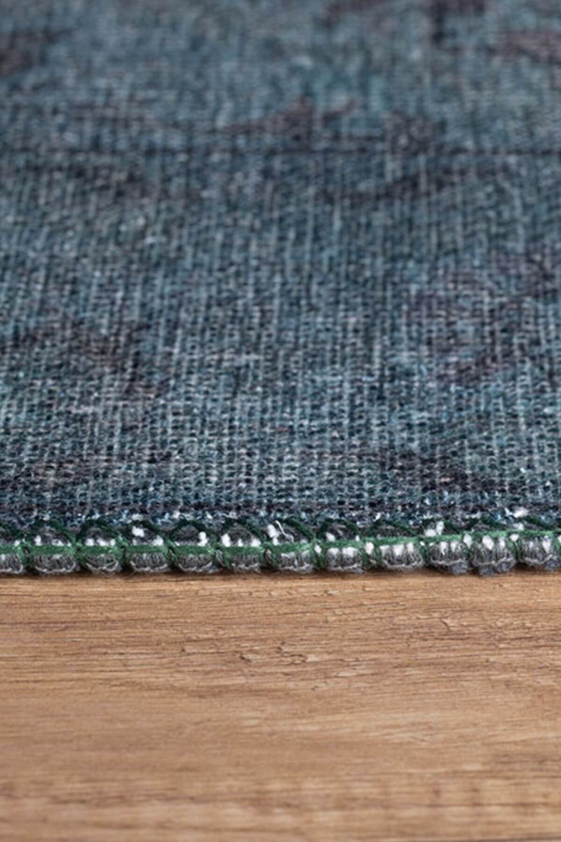 Outlet 75x230 Blues Vintage Desenli Dokuma Taban Dekoratif Yeşil Halı AL-21