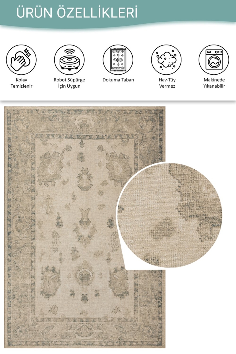 Outlet 75x230 Relic Bej Vintage Dokulu Klasik Desenli Dokuma Tabanlı Şönil Halı AL-514