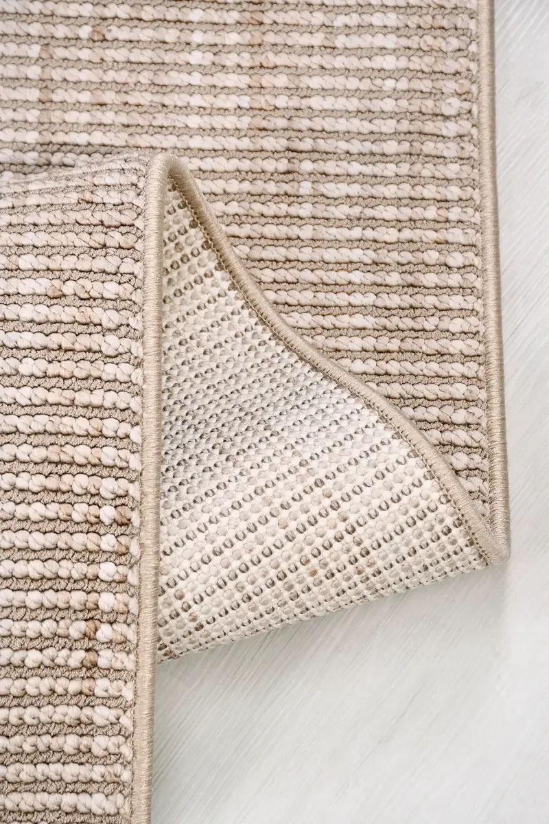 📏 7 mm bukle (loop) hav yapısı, halının yüzeyinde düz ve düzenli bir görünüm oluşturur. Bu yapı sayesinde kolay ezilmez, tüylenme yapmaz ve formunu uzun süre korur.