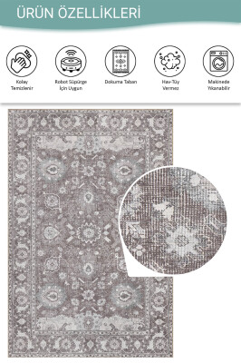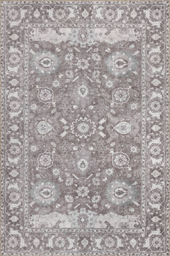 Stonart Eskitme Vintage Desenli Kahverengi Otantik Yıkanabilir Şönil Halı AL 454