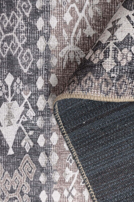 Stonart Eskitme Vintage Desenli Kahverengi Otantik Yıkanabilir Şönil Halı AL 464