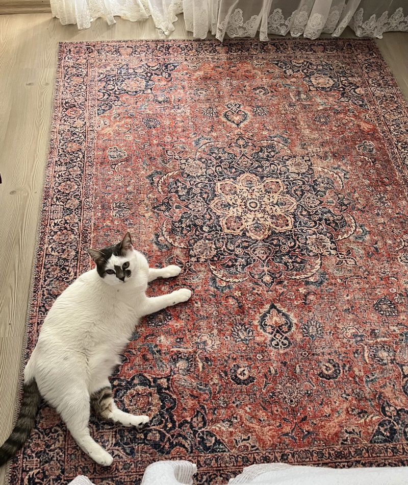 Halının dokusu görüntüsü o kadar güzel ki. Pazartesi günü sipariş oluşturdum, cuma günü teslim edildi. Süpürgenin fırçasız başlığıyla çok rahat süpürülüyor. Evde kedim var, yüzeyi tüy ve toz toplamıyor. Almak isteyenlere tavsiye ederim.
