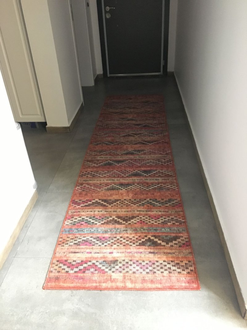Küçük boyunu mutfağıma almıştım ,çok memnun kaldığım için büyüğünüde sipariş verdim.halının çok başka bir havası var desenlerinde renklerinde bir güzlelik var .süpürülmesi ve kaymaması çok güzel.ben çok memnun kaldım