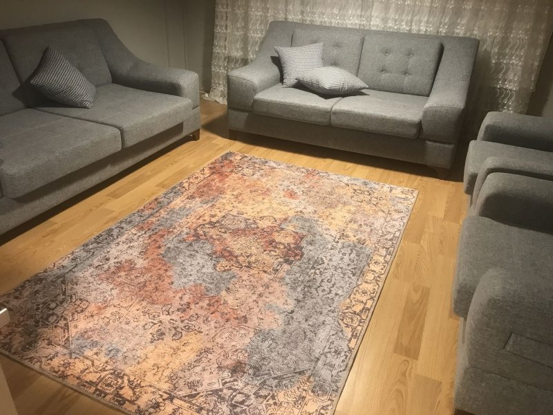 vintage bir havası var cok hos beğenerek kullanıyorum ince oldugu icin robot supurge de rahat temizliyor