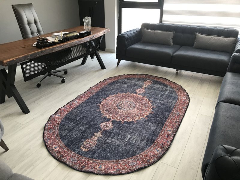 Blues Vintage Desenli Dokuma Taban Dekoratif Lacivert Halı AL 87