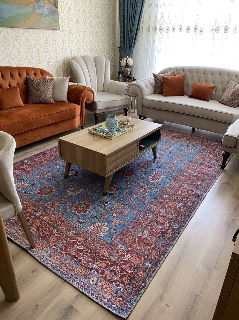 Blues Vintage Desenli Dokuma Taban Dekoratif Renkli Halı AL 170