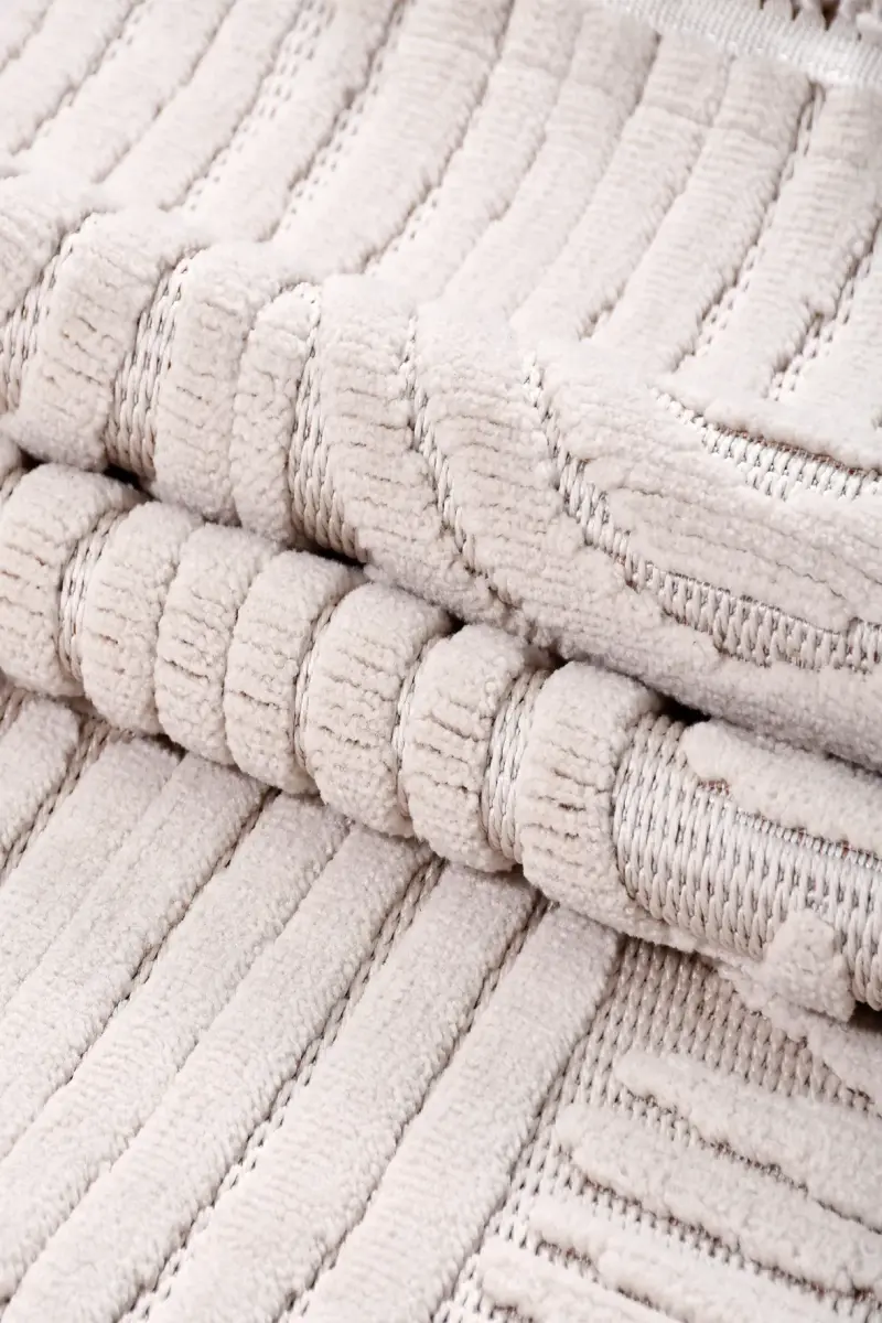 🪡 Saçaklı yapısı ve overlok kenar bitişi ile düzenli ve tamamlanmış bir görünüm sunar.