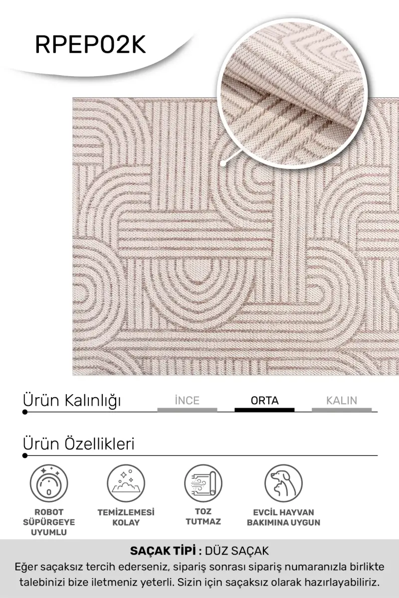 - Saçaksız tasarıma sahip olup, kenarları daha dayanıklı olması için overlokludur.